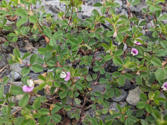 Korean clover (Kummerowia stipulacea) is one of many introduced plants that spreads in part as a lawn weed, but also colonizes other habitats where it takes the place of native vegetation. Here it is growing in exposed gravel in Capon Bridge, WV, along the Cacapon river. Note that nothing is growing in with it; although it is a nitrogen fixer, it tends to form monocultures. Photo © Matthew Gerke, CC BY 4.0, Source.Although people are not actively breeding these weeds to be more invasive, lawn culture unintentionally has this effect. In nature, many of the habitats that these plants would colonize are ephemeral, persisting only temporarily in response to a disturbance. But the regular mowing of lawns creates a new, artificial habitat in which these plants can produce generation after generation, persisting in this habitat consistently and long-term, often in large numbers.