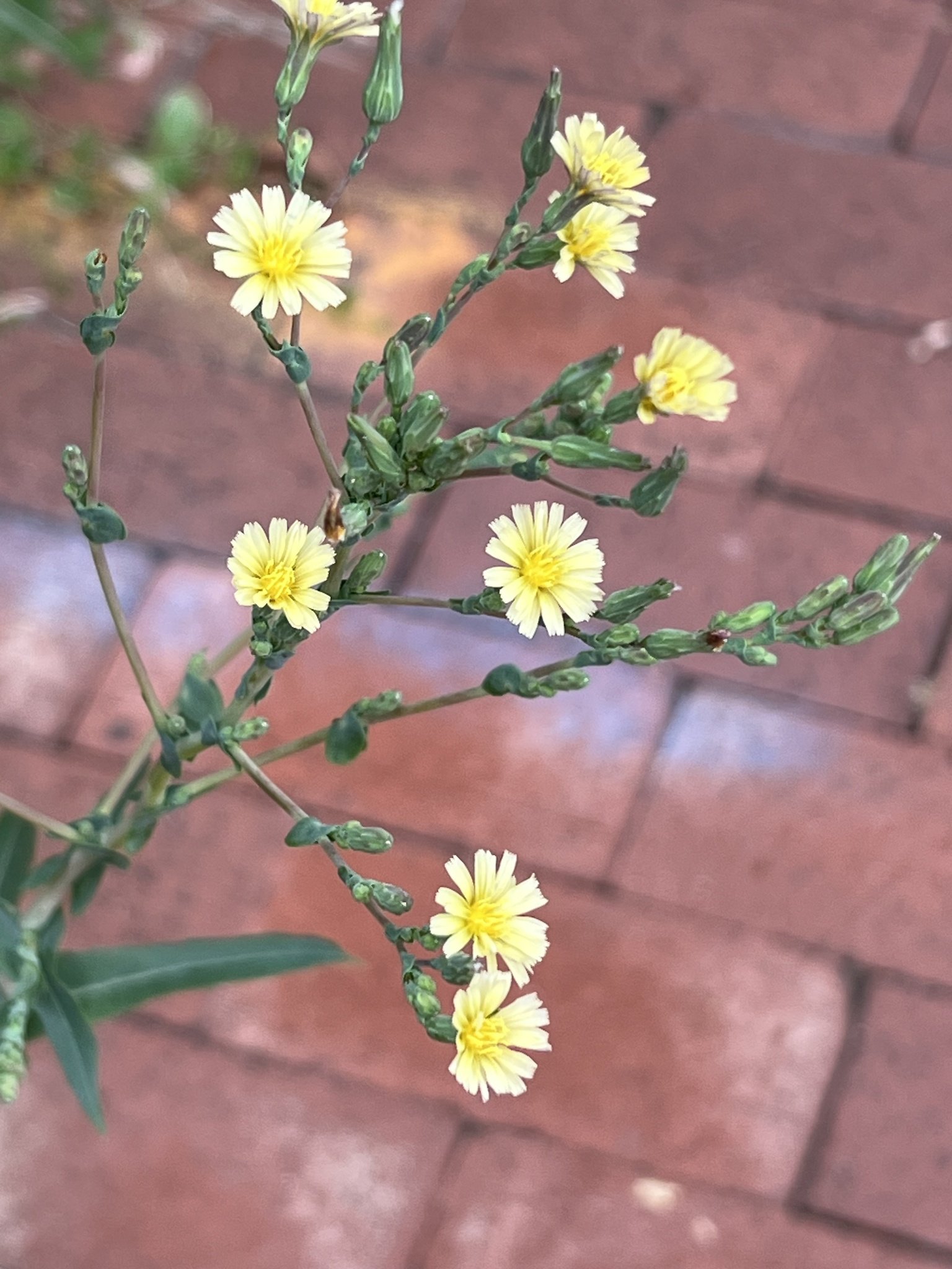 These two lettuces, one native and one introduced and invasive, are sometimes confused. Although they are usually easy to distinguish, it can be hard to learn how to do so because of high variability within each species. Close examination of the seeds, or presence/absence of prickles are most reliable for ID, whereas the other traits are largely-overlapping. L. serriola ranges farther west and favors drier, sunnier, more barren habitats, in the east strongly favoring anthropogenic habitats, whereas L. canadensis ranges farther north and south in the east, tolerates more shade, and prefers moister, richer soil and more competing vegetation.