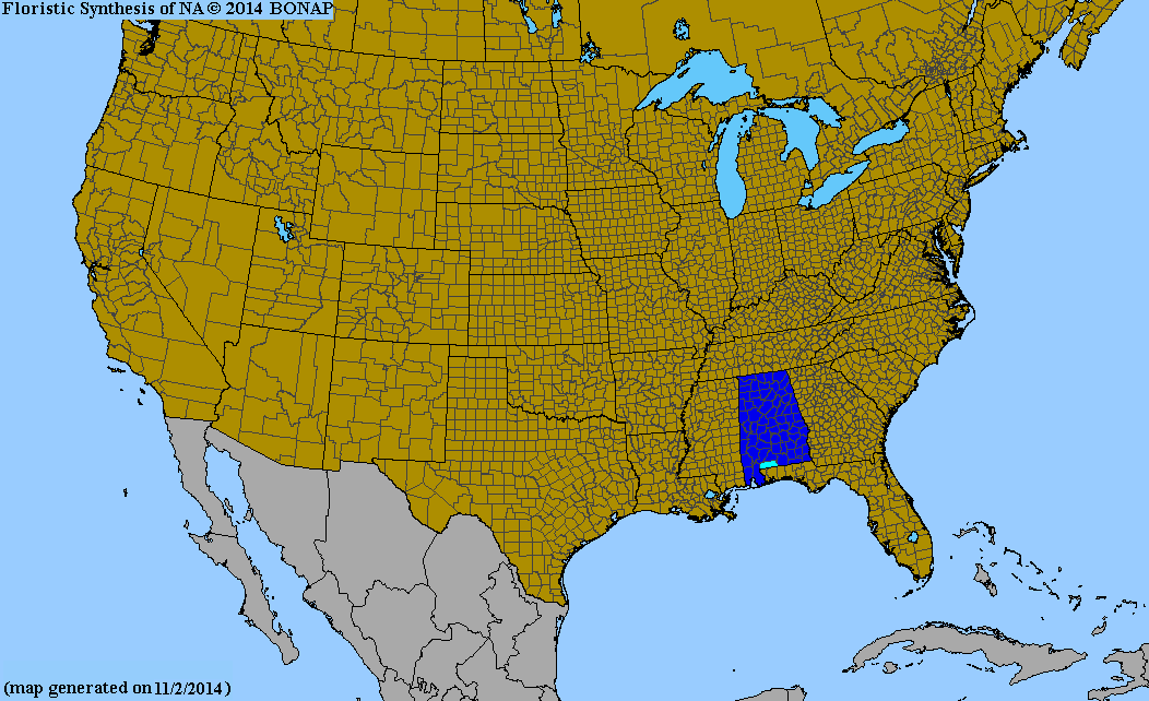 This species is widely native throughout Mexico; BONAP reports it as introduced in one county of Alabama, but we found no other sources listing it so we do not know whether or not that is a valid record. We have yet to build the portion of the map in Mexico.